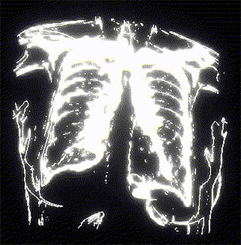 Even though I have since relocated to the city, my ongoing experience of this illness has been entirely in the context of my relationship to the landscape. My symptoms follow seasonal patterns and are greatly effected by the environment. I understand my body and illness as a landscape and ecosystem. My diagnostic scans are maps and spaces for me to explore. The otherwise invisible and inaccessible interior space of the body is transformed into a space that a viewer can move through or follow as if reading satellite imagery. At some points it might resemble geology, patterns of animal movement, or the night sky. All of this world is within me and I share my ecoscape for others to explore.