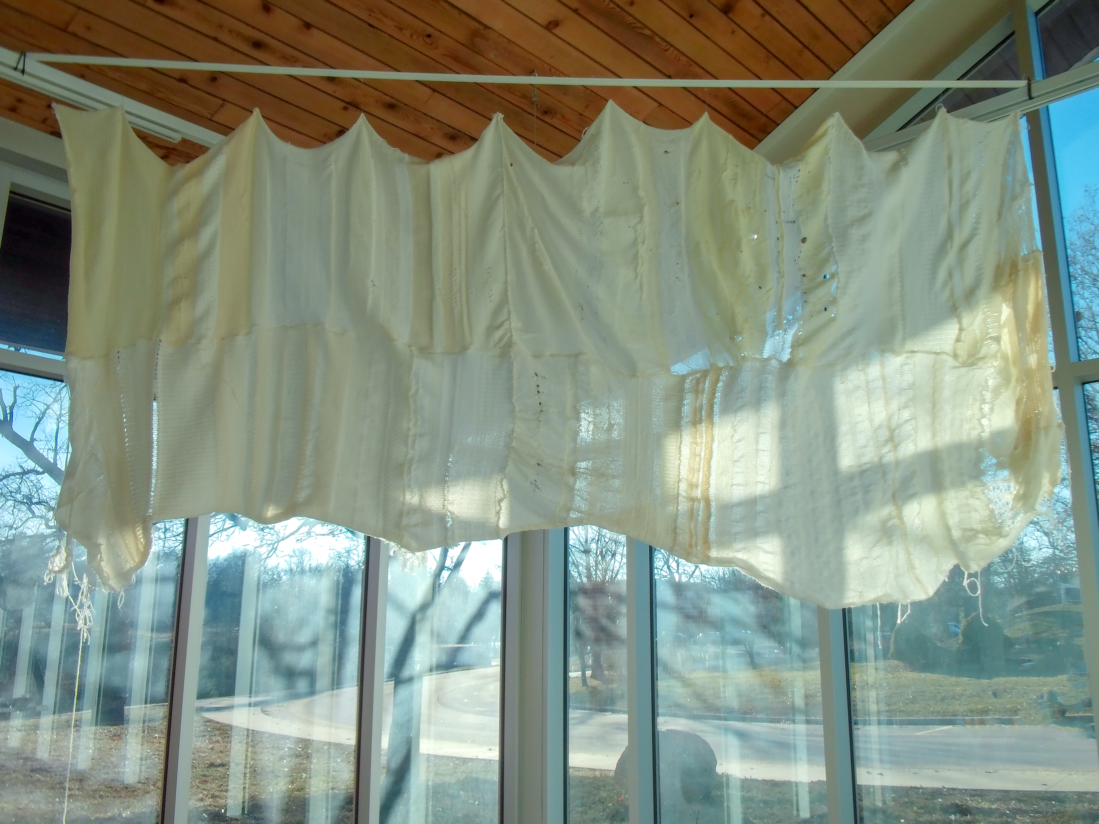 acrylic yarn, paper, felt, organza